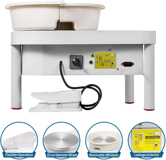 25cm Electric Pottery Wheel 350W White with Liftable Legs and Detachable Basin