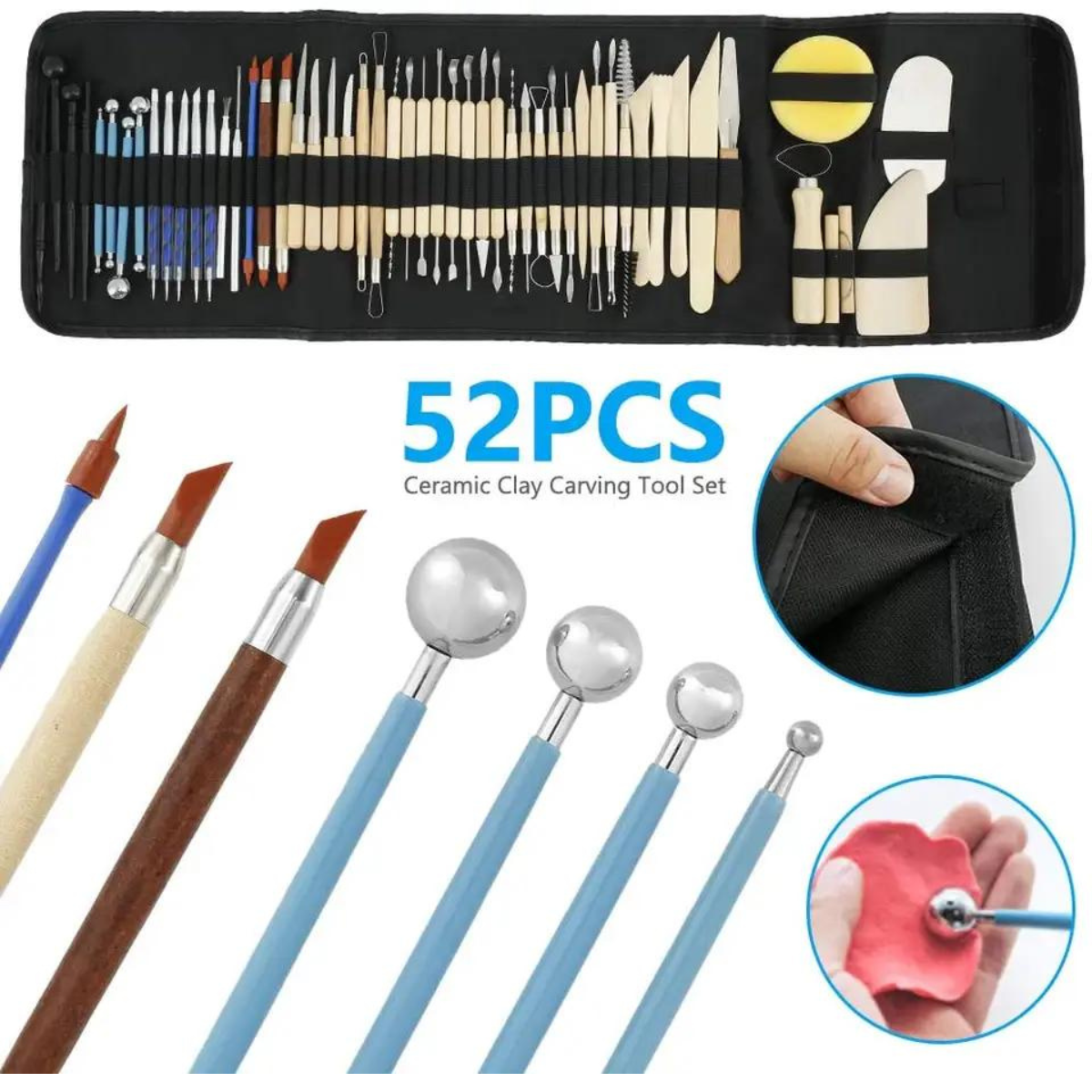 The 52Pcs Polymer Clay Tools Sculpting Kit with Pottery Carving Tools and Wooden Handles offers a variety of advantages for artists and enthusiasts working with polymer clay and ceramics: