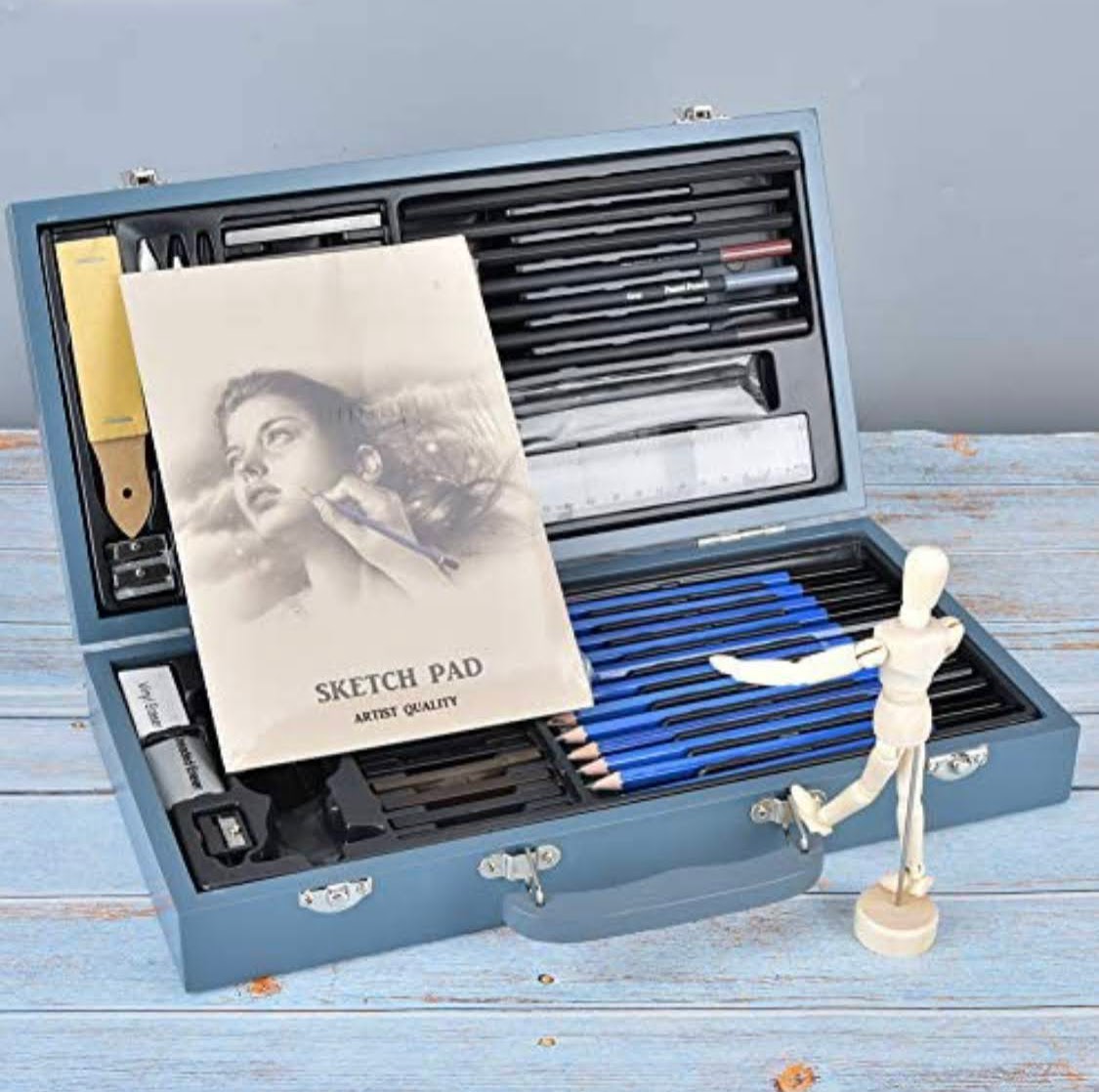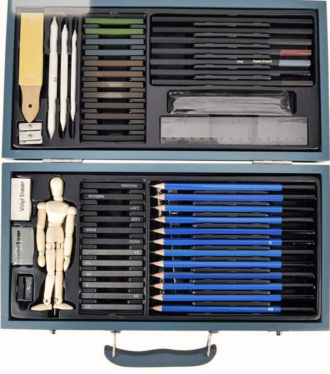Professional Art Kit, 60 pieces Drawing and Sketching Art Set, Coloured Pencils and Charcoal Pencils in a Case