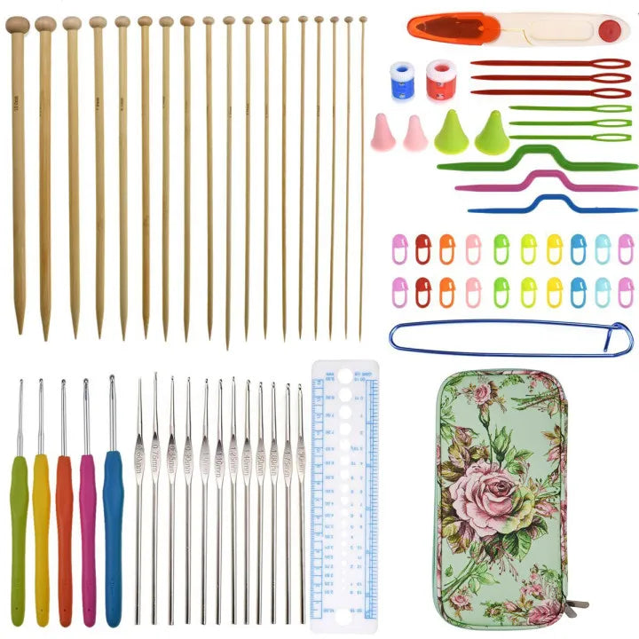 92 piece Crochet Kit with a full set of Bamboo Knitting Needles