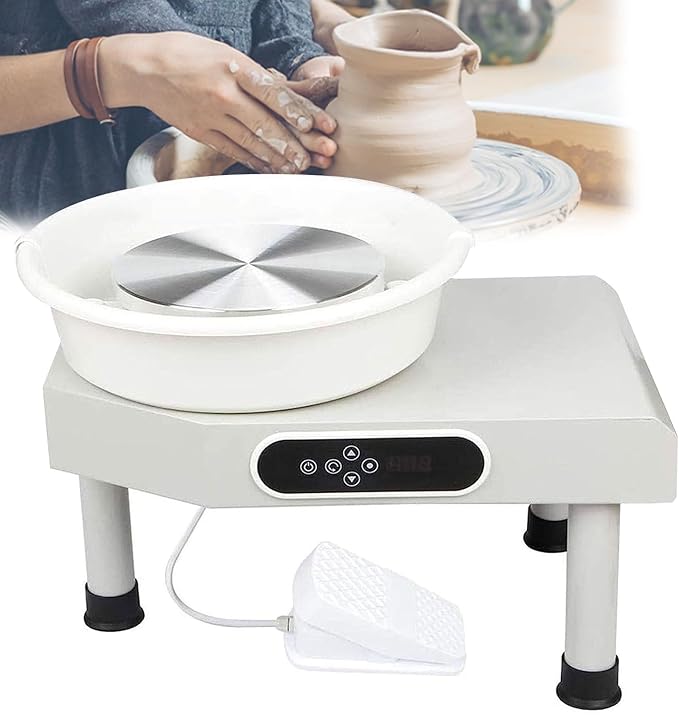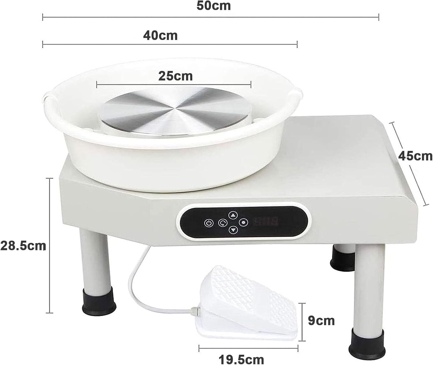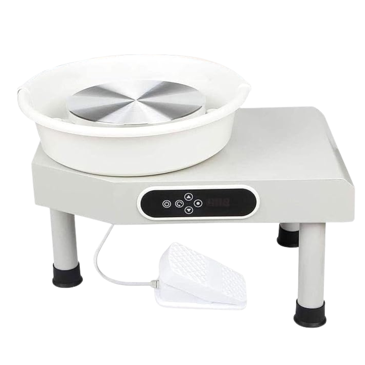 Electric Pottery Wheel 350W - White - with digital controls, foot pedal and extendable legs