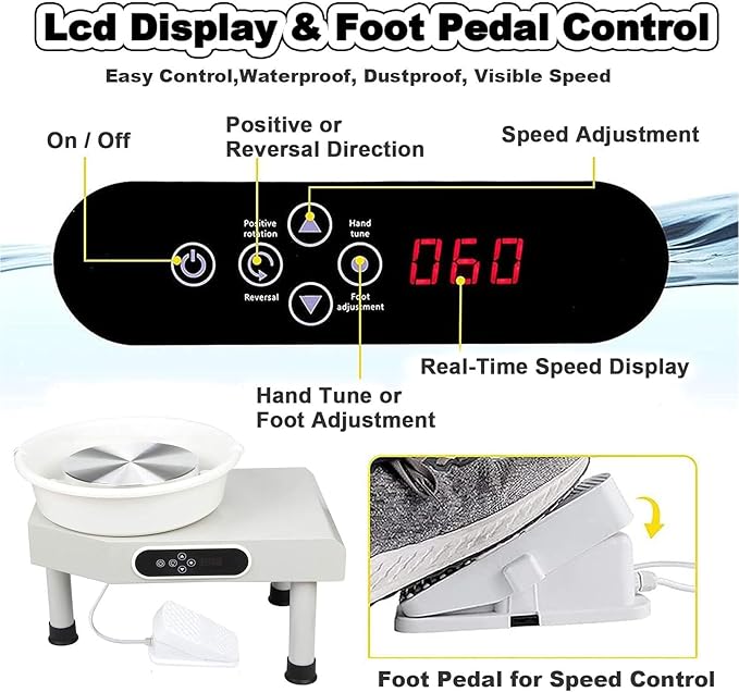 Smooth, adjustable speed control via foot pedal or dial, allowing for precise shaping and easier control for beginners and professionals alike.
