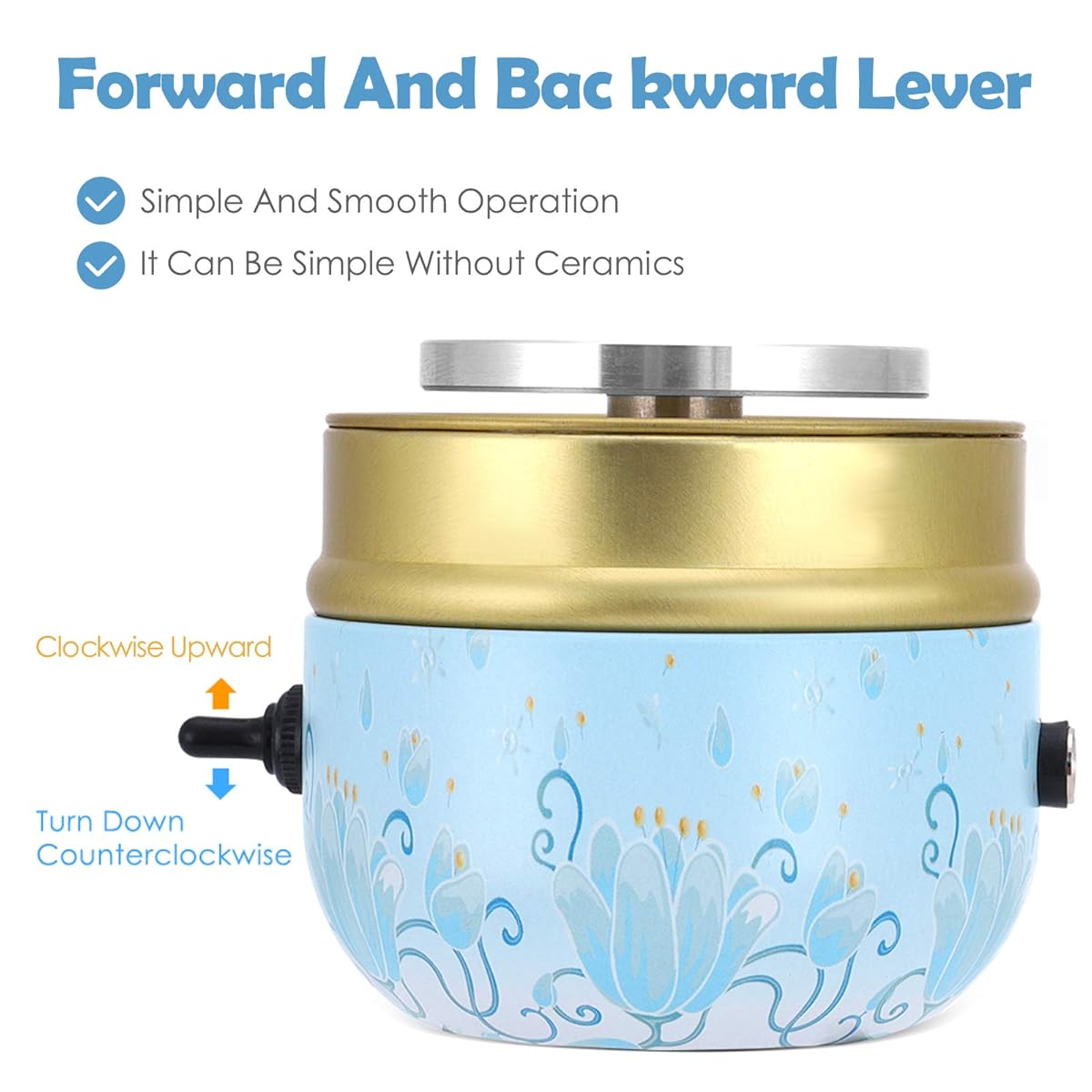 CW and CCW: Press the lever upward to rotate clockwise. Reset the lever to stop rotating. Press down the lever to rotate Counter Clock Wise.