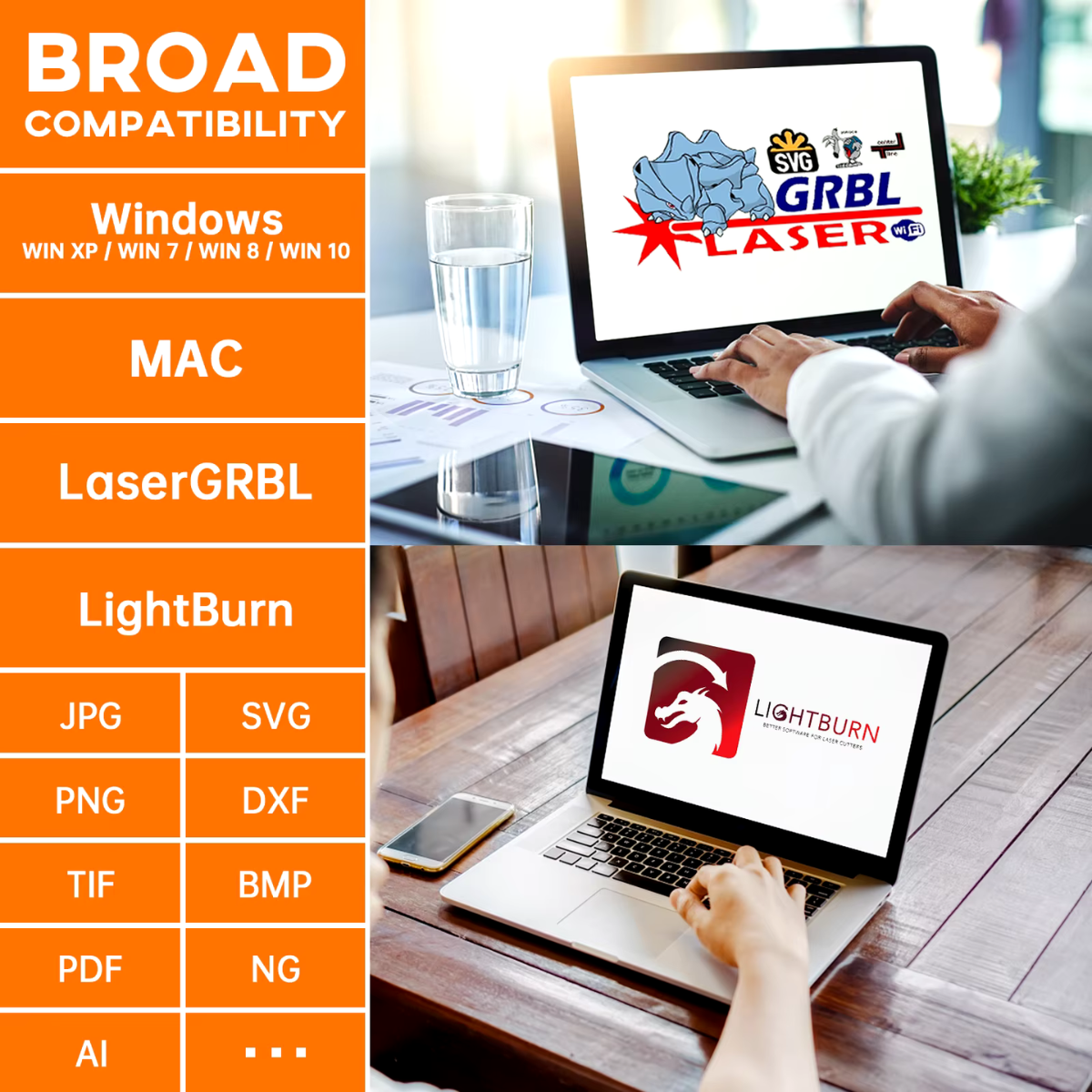 - Broad Compatibility: Windows, Mac, LaserGRBL, Lightburn